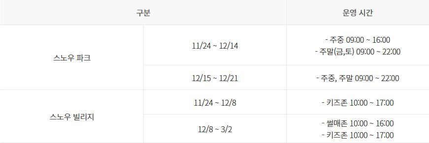 | 눈썰매장 주간 | 09:00 ~ 17:30 |